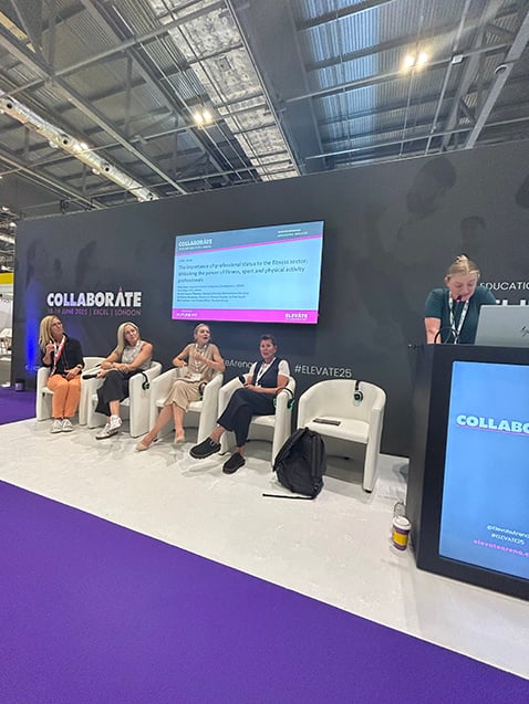 Bringing together professionals from the fitness industry, healthcare and allied fields, Elevate continues to be an essential annual pilgrimage for the team at CIMSPA. A selection of our staff represented both on the exhibition stand and on the numerous expert panel discussions included in the programme, covering subjects ranging from AI and weight-loss medications to the international portability of our workforce.