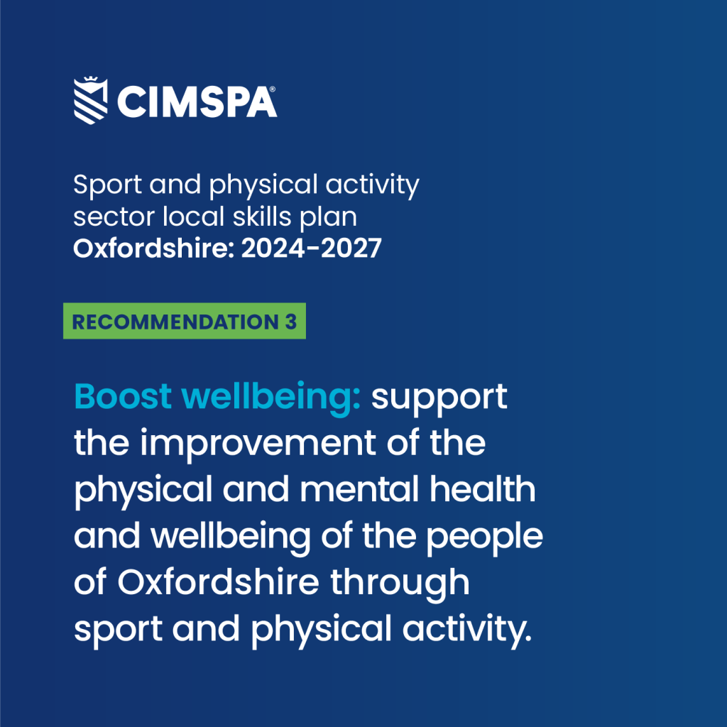 This year, as part of our local skills work within our strategy, we launched a local skills plan for sport and physical activity in Oxfordshire alongside local employers, education providers, local authorities, the health sector and employability-focused organisations.