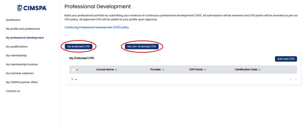 2 – Select either ‘My endorsed CPD’ or ‘My non-endorsed CPD’