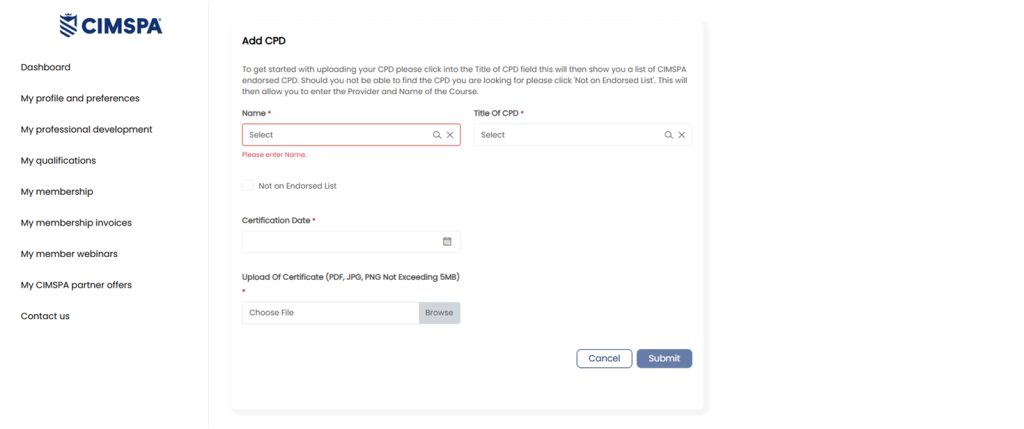 How to upload CPD